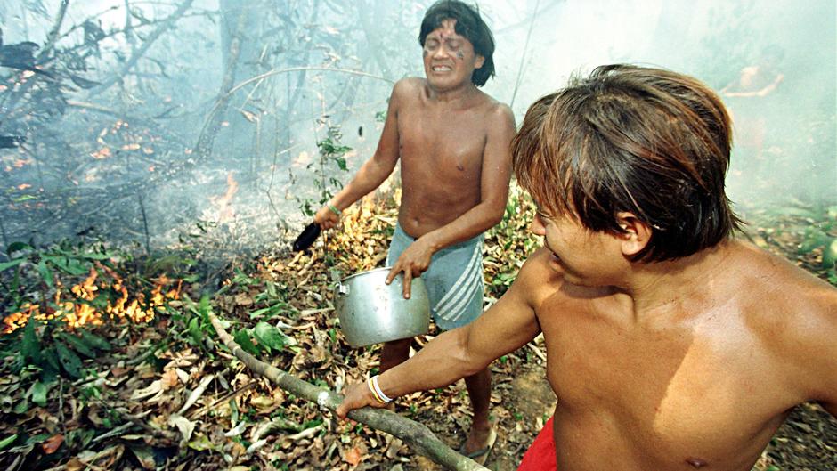 La récupération de terres sur la forêt est souvent nécessaire pour assurer l’alimentation des populations locales. Ici des indiens Yanomamis, dans l’État Brésilien de Roraima, nettoient une parcelle qui a été récupérée par brûlage. Dans d’autres régions, c’est l’exploitation minière ou l’agriculture industrielle, comme celle de l’huile de palme en Indonésie, qui menace les espaces forestiers.